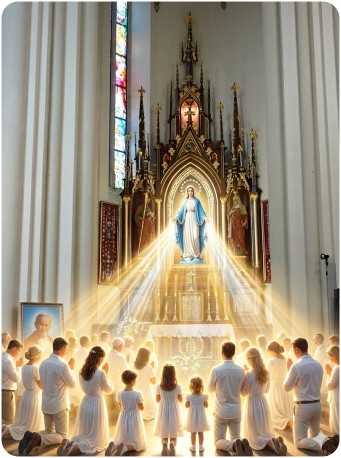 Święta Maryjo, Królowo Rodzin, w tej błogosławionej Godzinie Łaski zawierzam Ci moją rodzinę (możesz wymienić imiona). Otaczaj nas swoją opieką, strzeż przed złem, umacniaj naszą miłość i jedność. Pomóż nam przezwyciężać trudności i nieporozumienia. Ucz nas przebaczać sobie nawzajem i wspierać się w drodze do świętości. Niepokalana Matko, Ty znasz wszystkie nasze potrzeby – przedstaw je swojemu Synowi i wyproś nam potrzebne łaski. Amen.